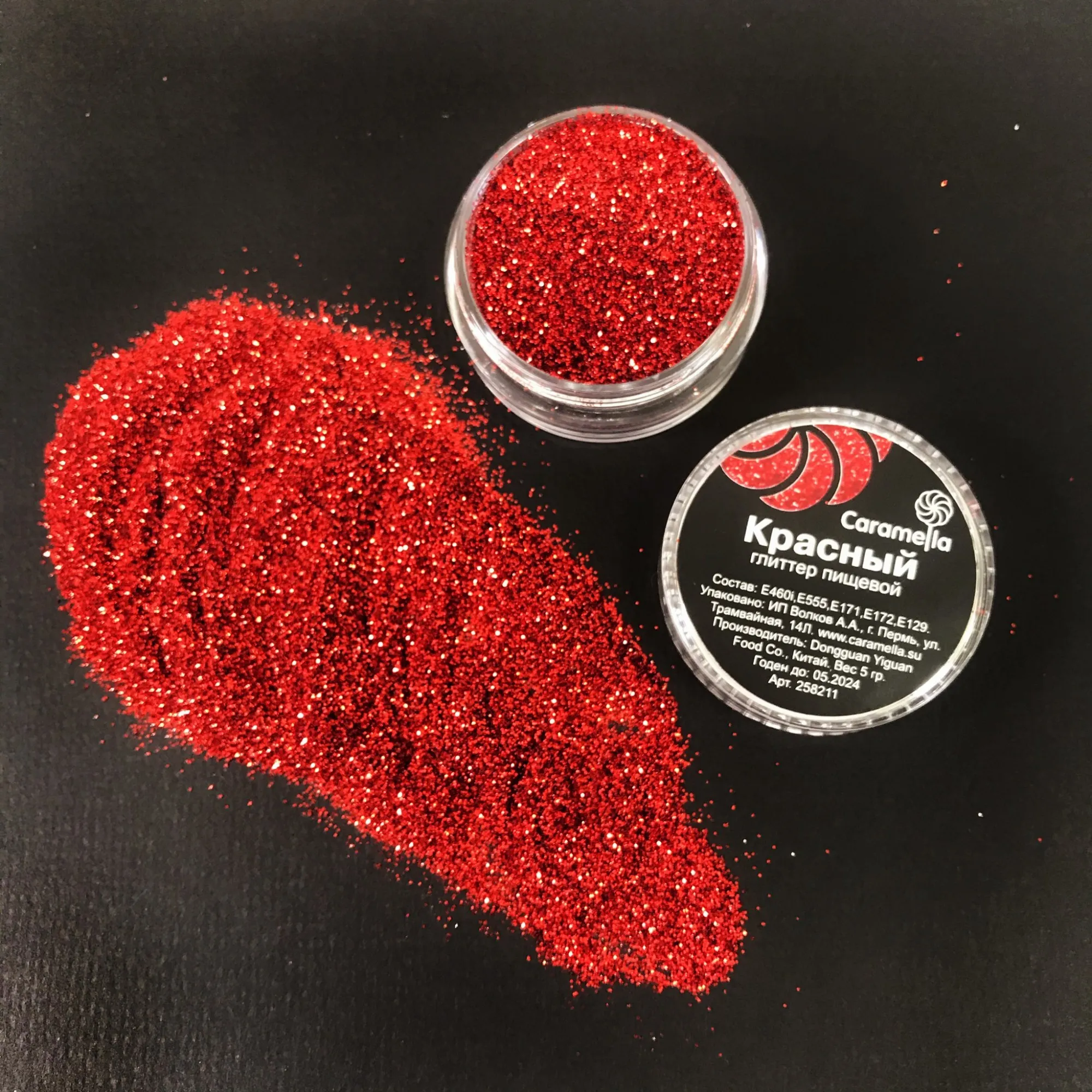 Глиттер Красный Caramella 5 гр пищевой